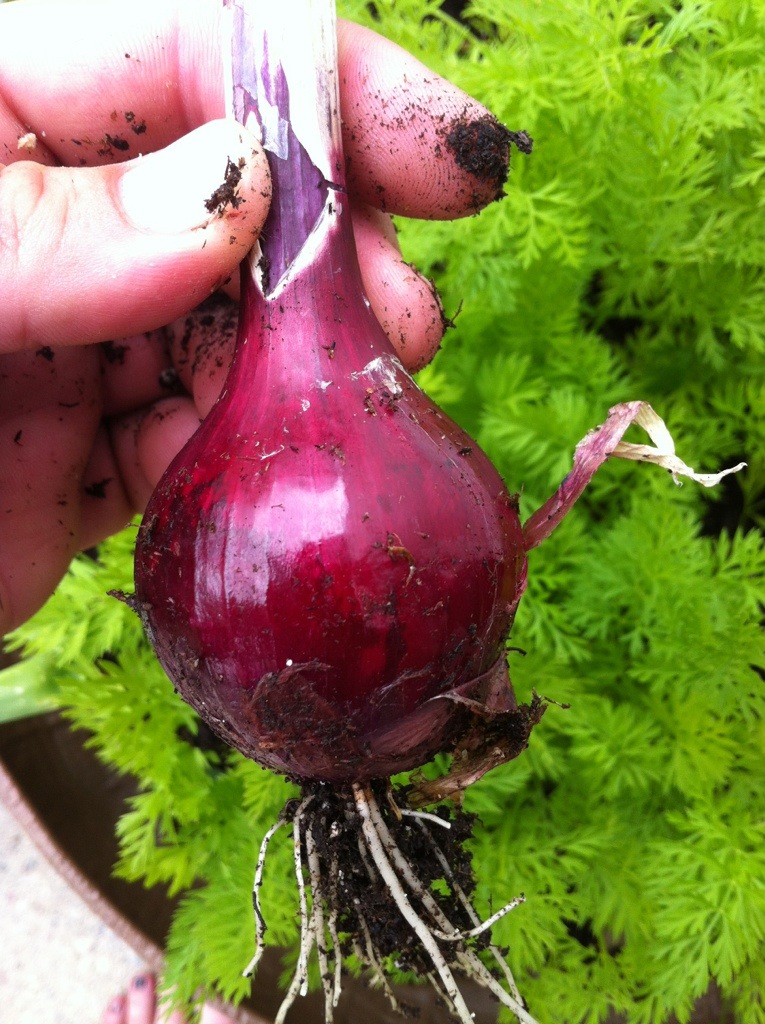 I harvested one of my onions I have in a container in my yard. It was smaller, but I just couldn’t resist. This is the first time I have been able to grow them with any kind of success. The last few years my onions grow the green tops, but never bulb up.