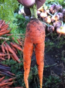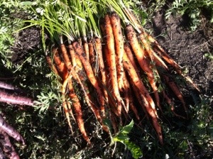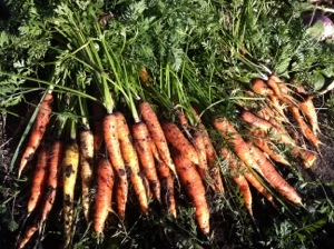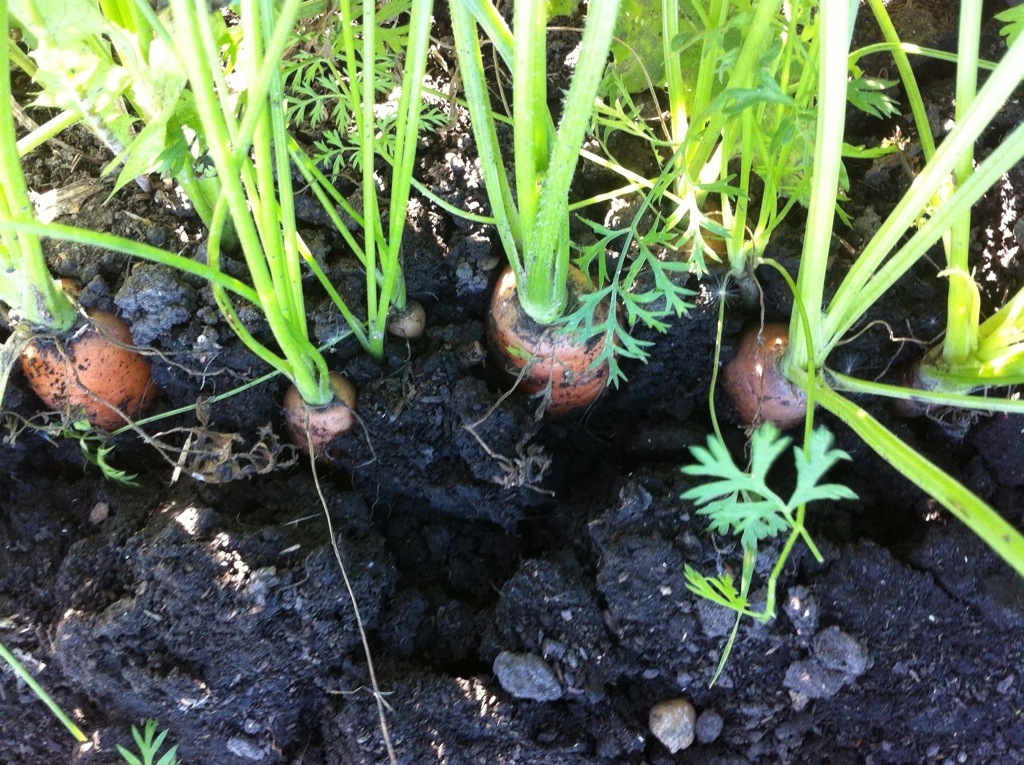 This year is the first time I have been able to actually grow large carrots. They are beautiful and taste amazing. There are a few that are random and forked (including one that looked like it had a camel toe!), but the majority of them look just like they should.