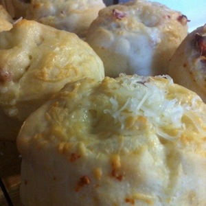 He made these amazing no knead Dinner Rolls… Way back in March of LAST YEAR! Ever since I saw them, I knew I had to make them. I love Dinner Rolls, and I love cheese, and a few weeks ago I was finally compelled to make them. Because of the snow storm we were having, I didn’t want to make a special trip to the grocery store for some of the ingredients, so I tweaked it to suite what I had on hand.