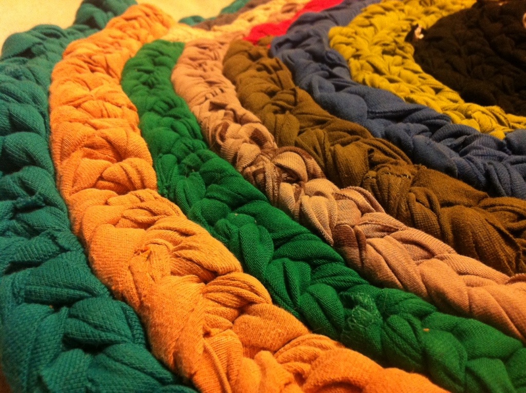So here is the T-Shirt Rug I have been making from the stacks of old T-Shirts I have that I couldn’t bear to throw out. Now they can have a new life.