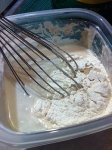 Whisk everything together like yesterday. Make sure there are no clumps or lumps left, and that it is a nice smooth mixture.