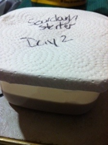 Cover with paper towel… The same as we did yesterday… And check back tomorrow for the update on my starter.