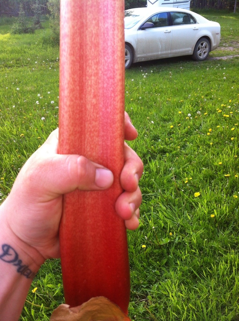 This year, I have some lofty rhubarb dreams. I was getting worried that I wouldn’t be able to try out all the ideas I have floating around in my head (and on my Pinterest feed), since my backyard rhubarb doesn’t produce a ton. But then I went home to visit my parents this weekend and all hope has been restored. I mean, like check this mammoth out!