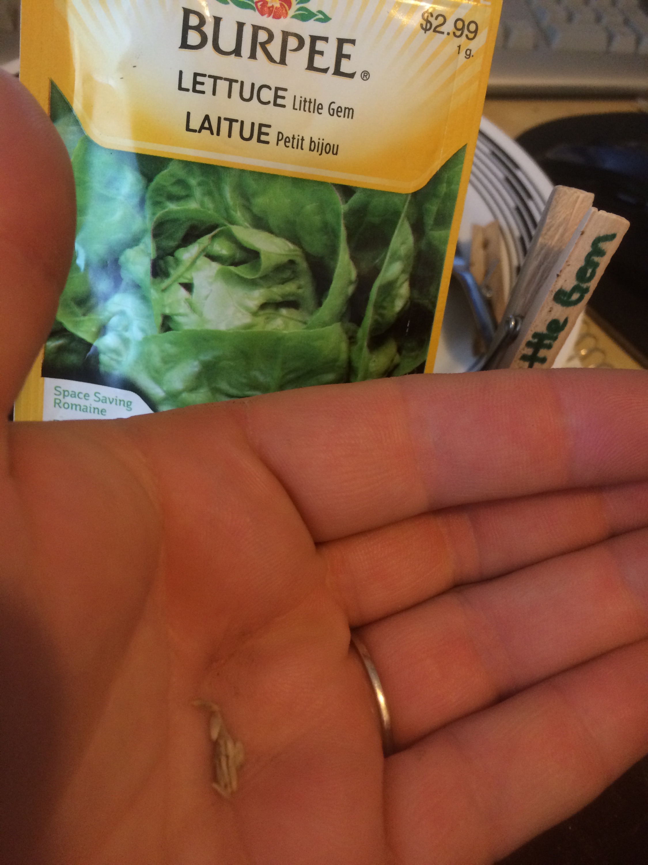 I also have some “Tom Thumb” lettuce to sow in a few weeks, which may be my saving grace in this goal of growing a head of lettuce, since they grow about tennis ball sized according to the seed packet. I think something the size of a tennis ball will be more attainable than something the size of a small volleyball.. Or something that is roughly the same size as a head of “Little Gem” lettuce?”