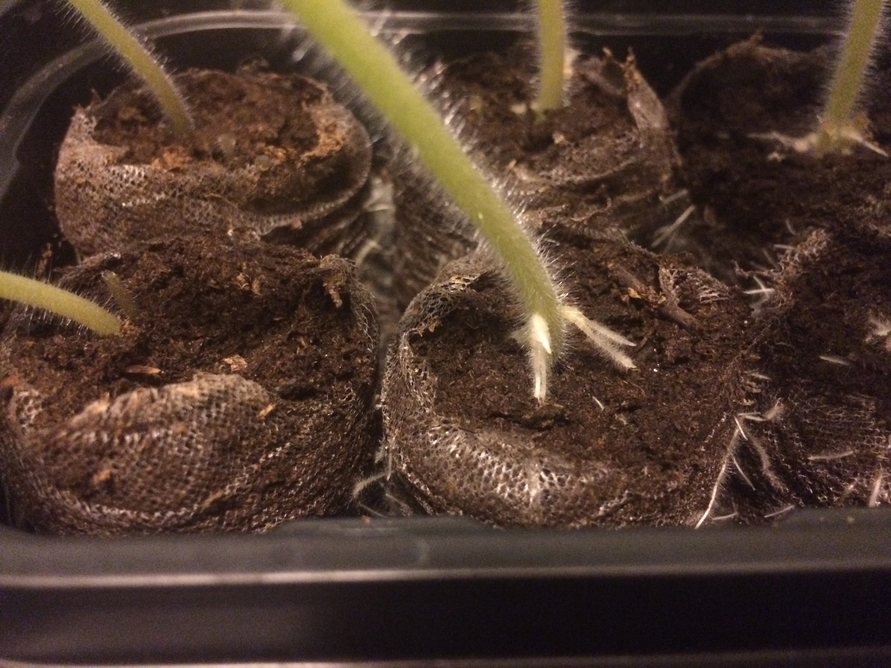 Once they are in their new homes, I firm the soil around them a little (not much, just to keep everything where it should be). and I tend to top-water as needed for the first week or so. Then only bottom watering unless the newspaper starts to get too dry. I top water because I start them off in the peat pellets, and I believe this helps keep the peat more moist, helping the roots to expand out into their new space. If I pot them up a second time (or started in soil to begin with), I will only top water once, just to help the soil fill in any big air pockets I may have left.