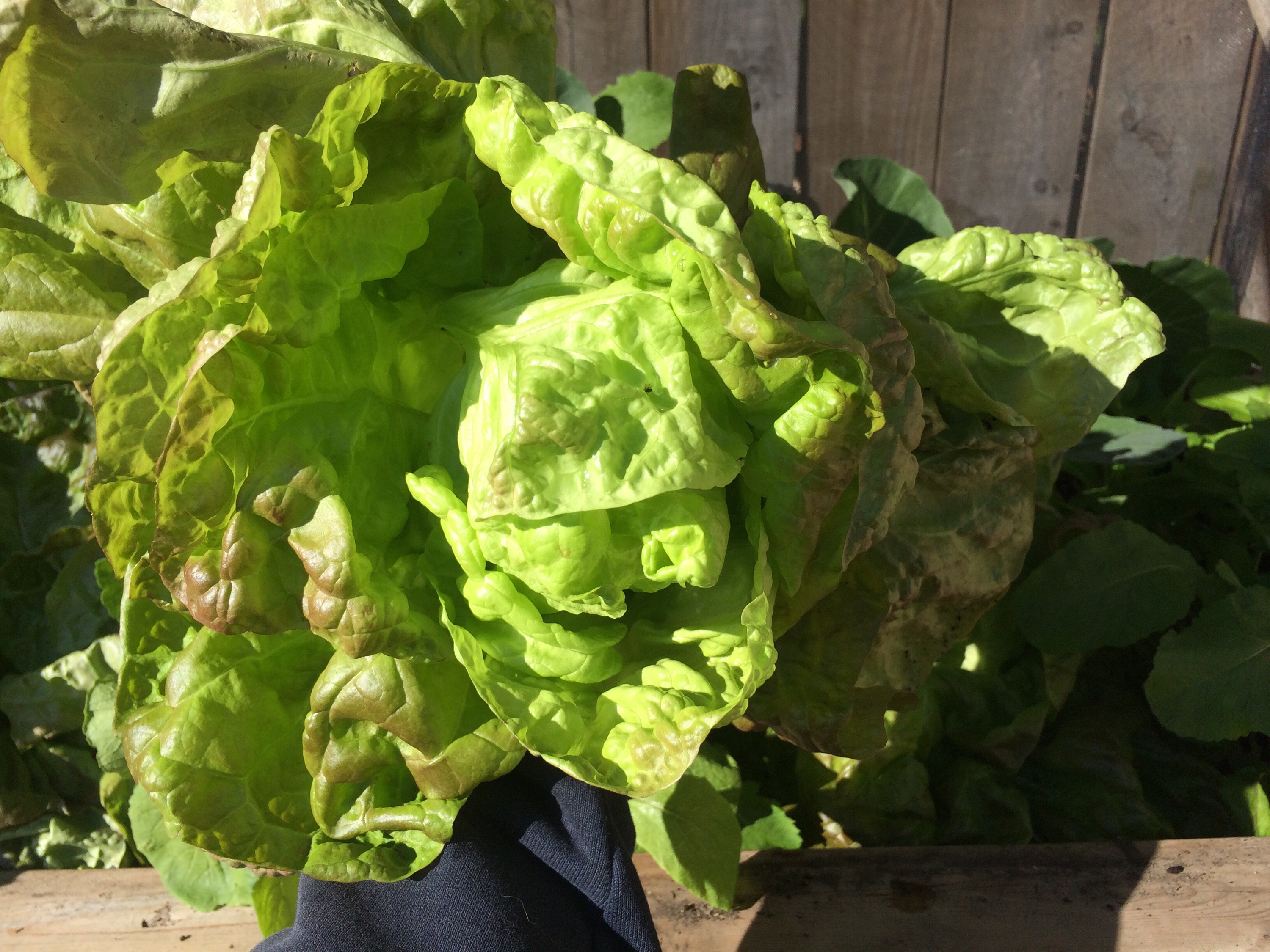 And just for the sake of this blog post (and my lunch today), (…and the cauliflowers better interests) I am harvesting one of my almost-heads of lettuce: