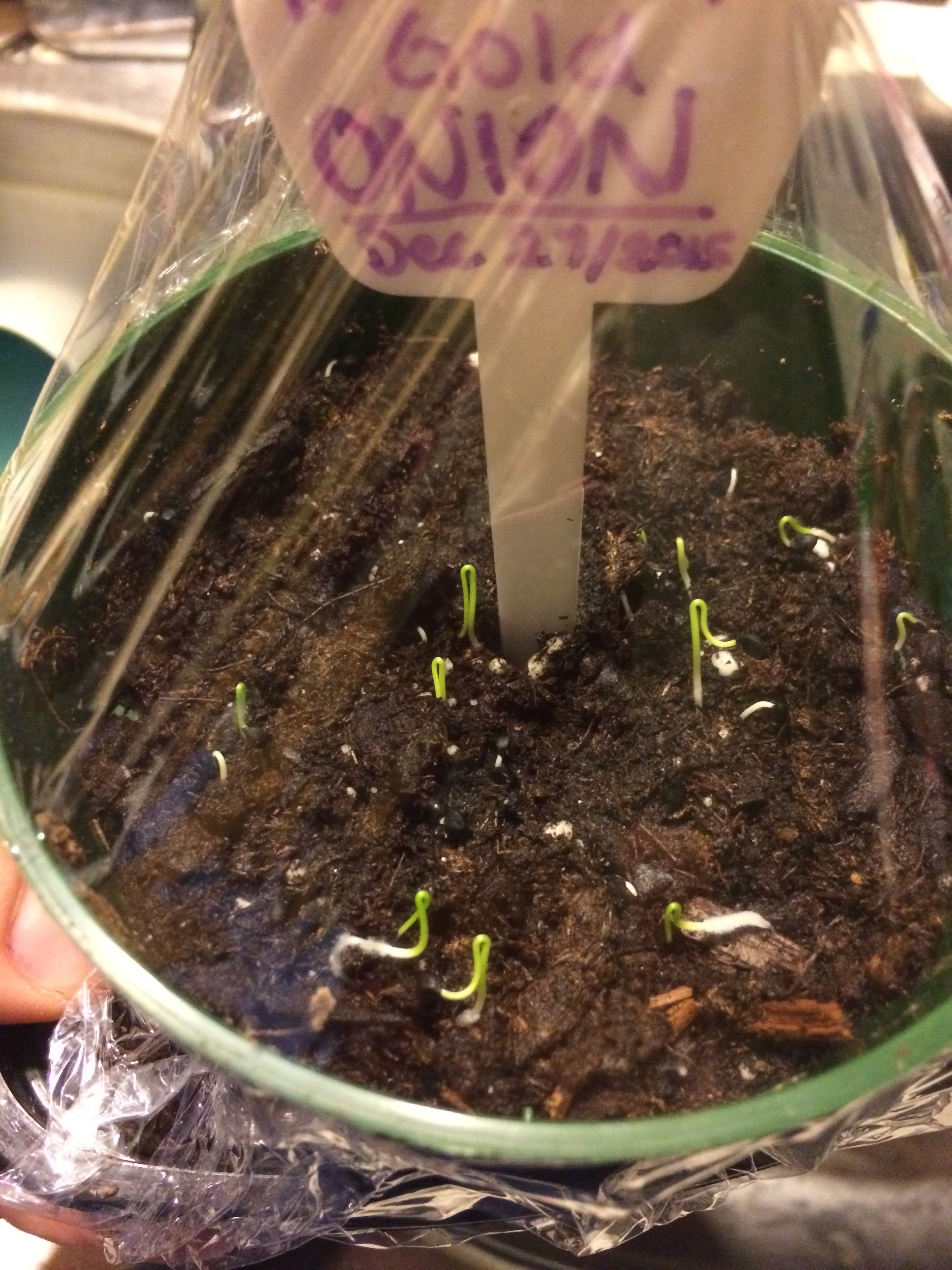 I started these “Northern Gold” onion seeds on December 27th… And we already have sprouting!
