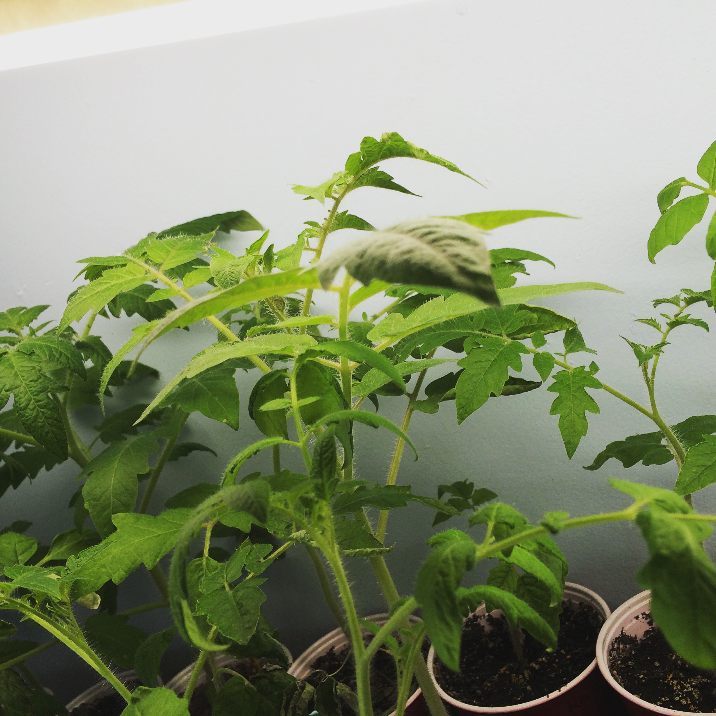 - April 19: I gave the potted up tomatoes a little feed with some super diluted Miracle Grow, and made sure everything in windows was rotated to help build stronger plants. (I usually do this every other day)