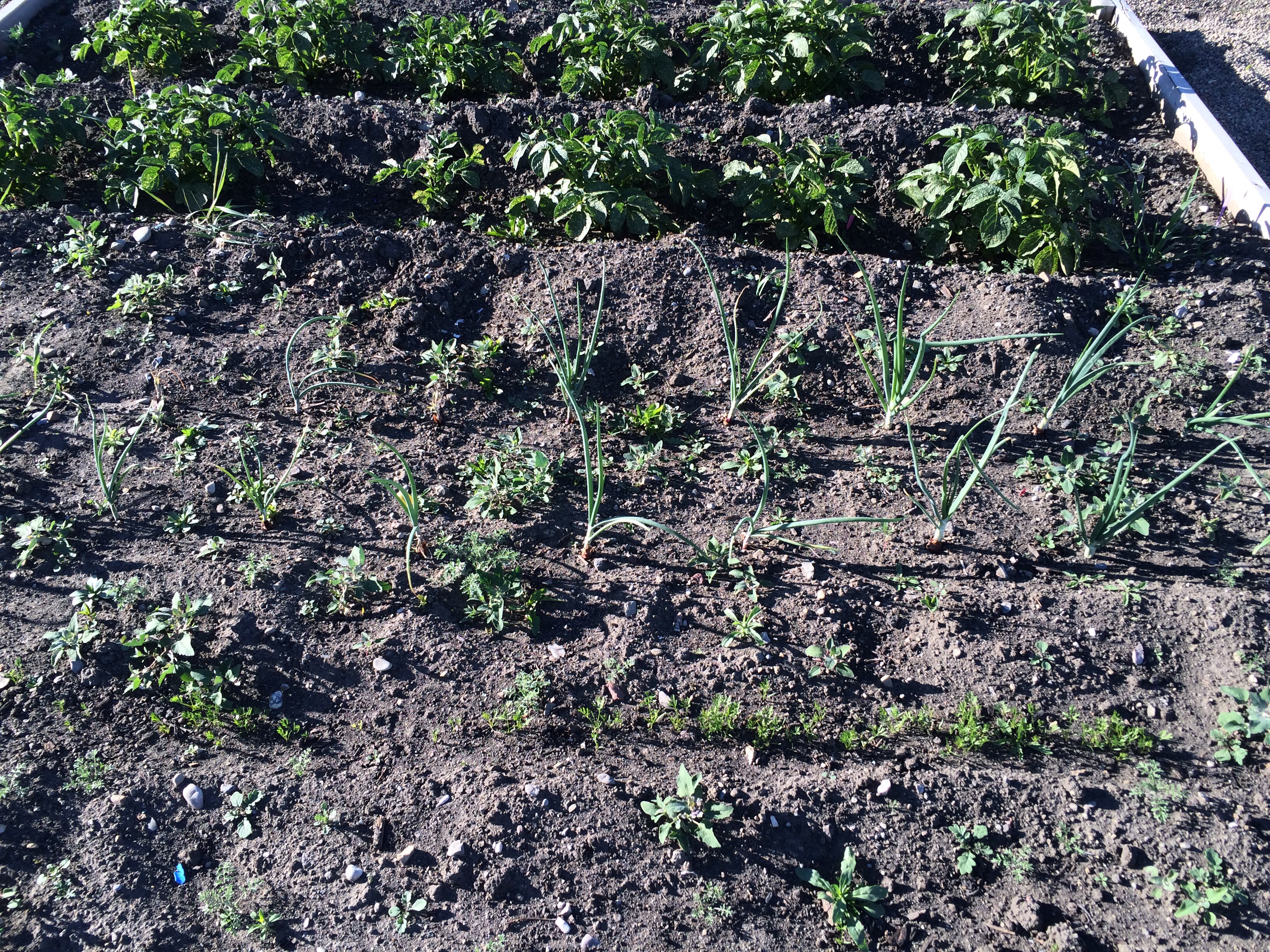 I expected a forest of weeds and wilted plants, but was pleasantly surprised to see a small number of manageable weeds. Only a handful of onions weren’t growing.