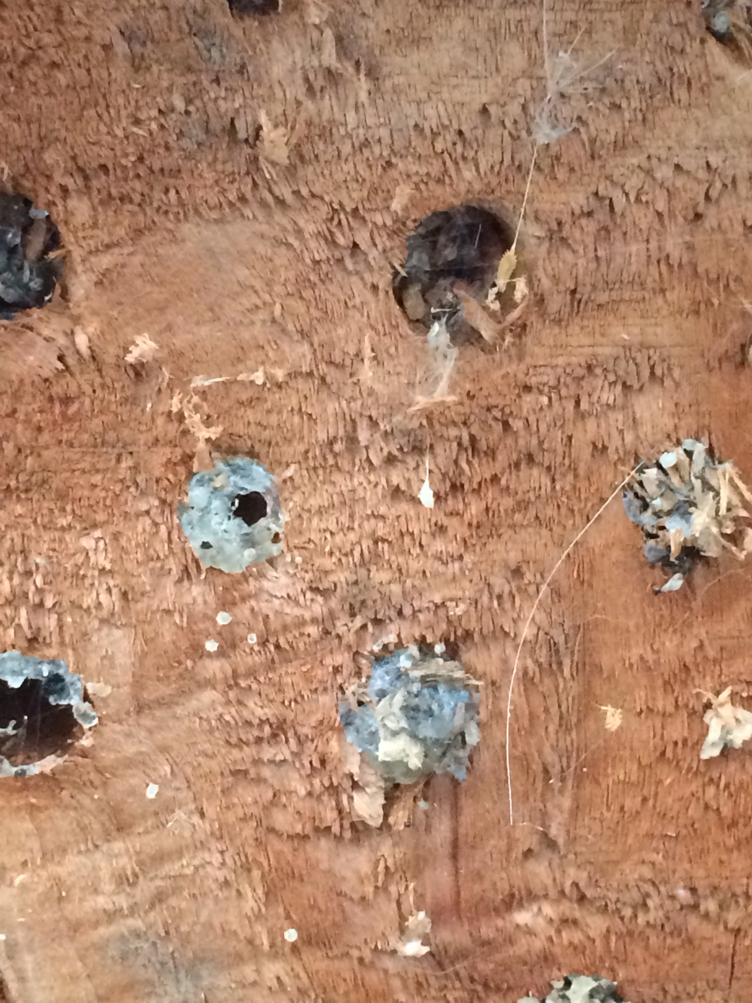 I don’t have a big write up about this, but here is a little update. This is the Mason Bee house I made last year. It is just a cedar 6×8 with a piece of scrap cedar deck board for the roof.