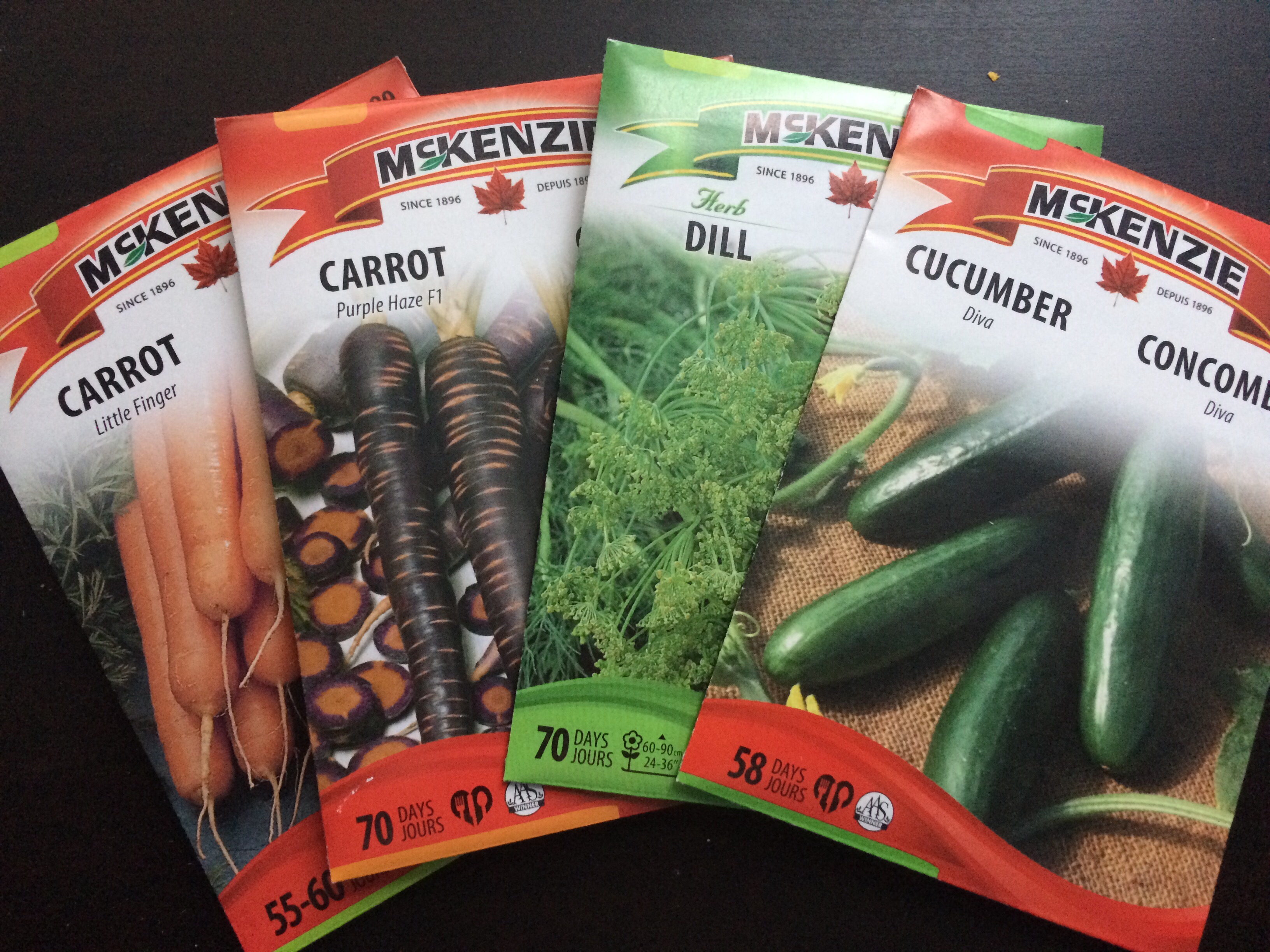 I have indulged in a few seed packets as well. 2 varieties of carrot (‘Purple Haze’ and ‘Little Finger’), some Dill and some ‘Diva’ Cucumber. The Cucumber is new, and I’m excited to try it. I like to grow the pickling cucumbers, but I don’t have the space to get the volume of cucumbers to make pickling all of my own worth it. Hopefully someday, but for now, I’m going to try something new.