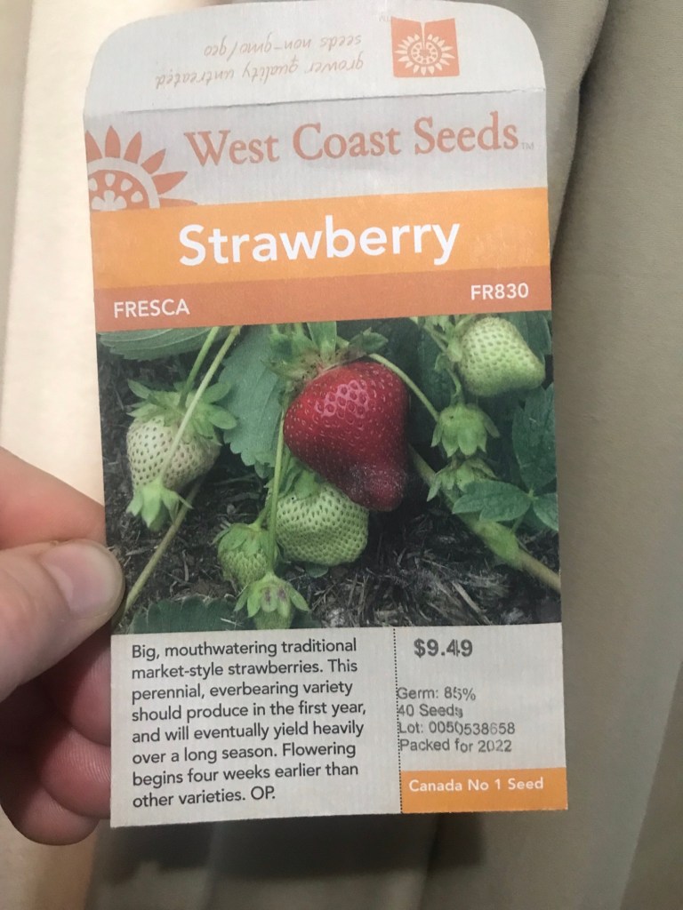 Since the garden is in a state of instability this year, I didn’t start anything from seed. No tomatoes, no herbs… Nothing. In May, at the height of not knowing where we were going to end up, I stress started ALL the strawberry seeds I had in my seed stash. I figured that at least I would have some baby plants to tend, and I could plant them out at my Dads in the summer if I needed to.