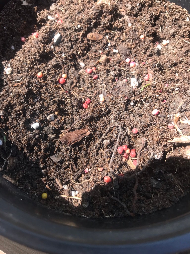 Did you know that crocus can send up little seed heads after the foliage has died back? because I didn’t until this spring. I don’t think I’ve ever seen this happen in previous years, but nearly every clump of crocus has done it this year. Whether I left it in the ground, or dug it up to move it. So what am I going to do? I opened up the seed pods of course and sprinkled them into a pot of potting soil to hopefully grow into more crocus. I’ll let you know how it goes here.