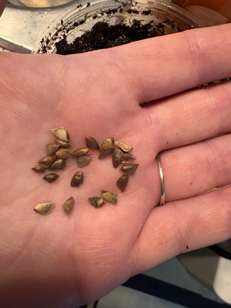 The seed packet instructions say to sow the seed 1/4″ (6mm) deep directly outside in late fall. But I won’t be doing that, partly because it is not fall, but also, the area I think I am going to plant these eventually is not even close to being ready for new plants. If I planted these seeds there, they would likely just get damaged as the area is prepared for the garden I dream of. They also say to cold stratify the seed, you can mix it in a sterile moistened soil and cover with a lid and freeze solid for 2 months. Then, place under lights, and germination should occur within 30 days. This is the route I went.
